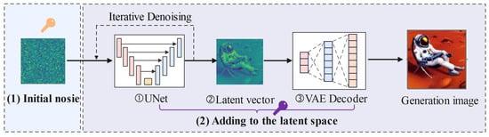 In order to enhance the efficiency and stability of the training process for diffusion probabilistic models, the Latent Diffusion Model (LDM) [39] was designed. It compressed these high-frequency details of the original image into a latent space to fully capture the perceptual details, thereby reducing computational complexity while maintaining the generative capabilities. By leveraging the extensive LAION-2B dataset [40] with 2 billion images for training, the research team released a series of LDM-based pre-trained models, collectively known as “Stable Diffusion” [41]. At present, Stable Diffusion stands as the most widely discussed and applied diffusion model in the field of image generation.