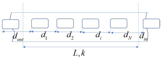 In the road section, the distance between vehicles is , the headway between the first vehicle and the preceding vehicle in the road section is , and the headway between the last vehicle and the following vehicle in the road section is . Formula (2) is obtained according to the relationships between density, the number of vehicles, headway, road section length, , and .