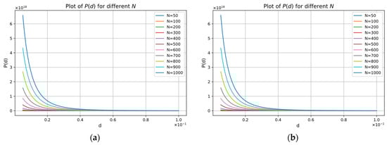 - As N increases, the value of P(d) gradually increases, and the overall curve rises. When d is smaller, the curve is steeper; when d is larger, the curve tends to be gentle.
