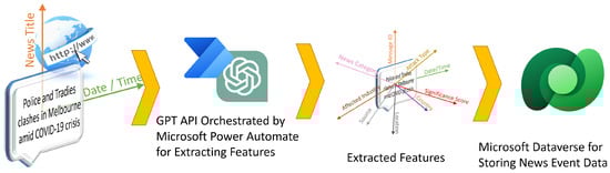 It should be mentioned that GPT turbo 3.5 API was used through Microsoft Power Automate (for orchestrating the automation). This process is documented in [21,22]. As shown in Figure 2, news reports from thousands of online news portals are obtained, and subsequently, GPT API ascertains the industry category, attack types, significance score, date of the cyber event, location, and country. This structured information is then stored in the Microsoft Dataverse table. The detailed processes, along with automation scripts and codes, have been depicted in [23,24]. Even though GPT API was used in this study, other LLMs like Google Gemini or even self-deployed open-source LLMs can also be used, as shown in our most recent study in [23].