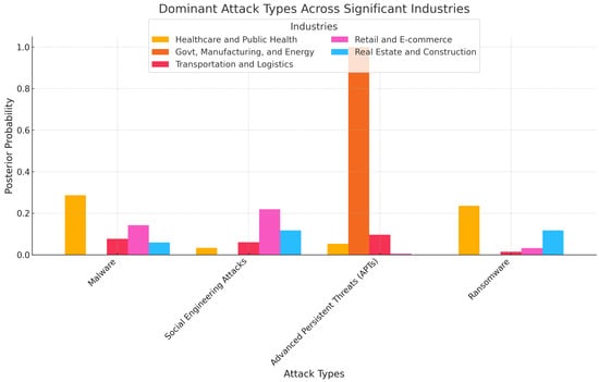 The methodology also quantifies the dominance of specific attack types within industries using Bayesian inference. This probabilistic approach enables precise assessments of the likelihood of particular attack types targeting specific sectors. For example, the analysis demonstrates that the Healthcare sector has a high posterior probability (0.287) of being targeted by Malware, underscoring the urgent need for robust system hardening measures in medical systems.