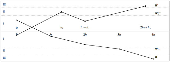 The VSI scheme, as proposed by Reynolds et al. [32] to enhance monitoring performance, is an advanced statistical process monitoring tool that dynamically adjusts sampling intervals to increase sensitivity to process shifts. As shown in Figure 6, the VSI scheme adds a warning limit () to the original control limit, dividing the IC region into two zones: a safe zone [0, ) and a caution zone [, H]. When the sample statistic falls within the safe zone, a longer sampling interval is selected to reduce sampling costs. When the sample statistic falls within the caution zone, a shorter sampling interval is used. In recent years, scholars have combined the VSI scheme with other schemes such as CUSUM and EWMA, as detailed by Reynolds et al. [32] and Saccucci et al. [33].
