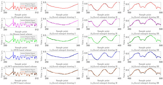 Original A-phase current signal with its restored signals [14,15,21,29].