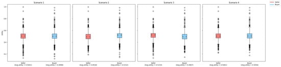 In summary, based on our analysis of the experiment results, relative to the OM, the PM demonstrated improvements in negotiation rounds, joint utility, and utility differences of 4.79%, 1.05%, and 6.87%, respectively. These findings indicate that the proposed model significantly enhances negotiation performance by reducing negotiation rounds, improving joint utility, and narrowing utility differences. It is noteworthy that the relatively modest improvement in joint utility (1.05%) compared to the reductions in negotiation rounds and utility differences can be attributed to the trade-off between fairness and total utility. As discussed in Section 3.3, our model incorporates an expectation restoration rate to promote negotiation fairness, which encourages agents to avoid premature compromises and preserve their individual interests. Consequently, the improvements in fairness are more pronounced than those in joint utility.