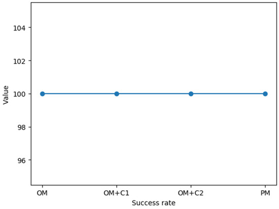 The result of the success rate on OM, OM+C1, OM+C2, and PM.