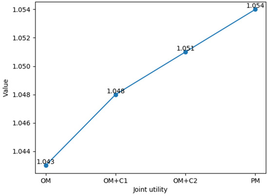 The result of the joint utility on OM, OM+C1, OM+C2, and PM.