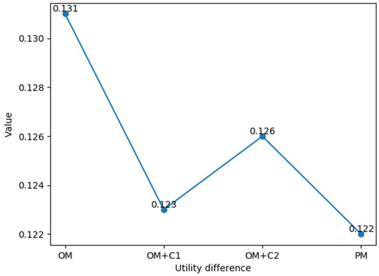The result of the utility difference on OM, OM+C1, OM+C2, and PM.