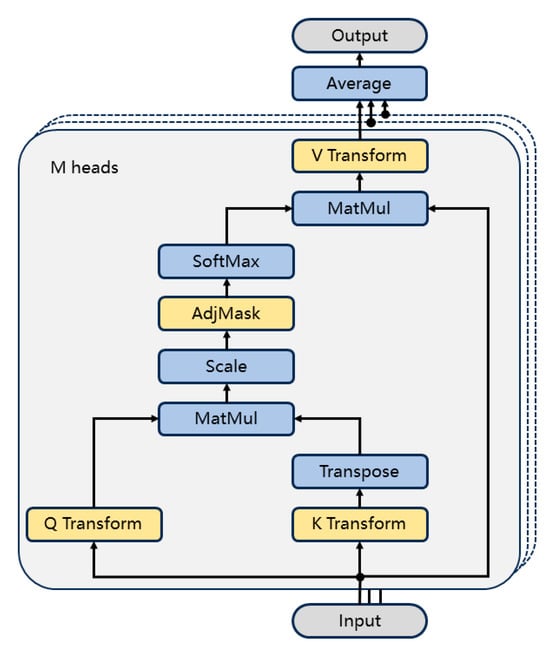 Figure 2 illustrates the multi-head graph attention mechanism proposed in this study, which is implemented in a manner distinct from the widely applied Veličković et al.’s GAT [