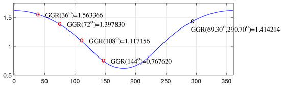 For the angle , the solutions of Equation (9) are