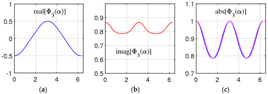 The solutions of the equation are the complex numbers . Therefore, we consider the solution of the equation , which are (see Equation (4))