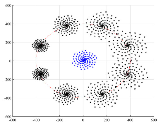 The concepts of the similarity vectors and similarity sets of vectors, or golden vectors, are defined in the vector space. These concepts were described in detail and illustrated in Section 6 on examples with triangles represented as vectors. In this section, we present the concept of similarity on figures, without considering them as vectors. In general, it is difficult to describe many figures (objects), for example, the seven-pointed star, in the vector space. The generalized golden ratio function can also be used in the simple case for similar figures (or objects), considering the change in the size of a given figure according to this function, as the function of angle; that is, after rotating the figure. Now, we will illustrate this simplified concept of similar figures on examples in the 2D plane, which include well-known figures, such as pentagons, heptagons, stars, and spirals.