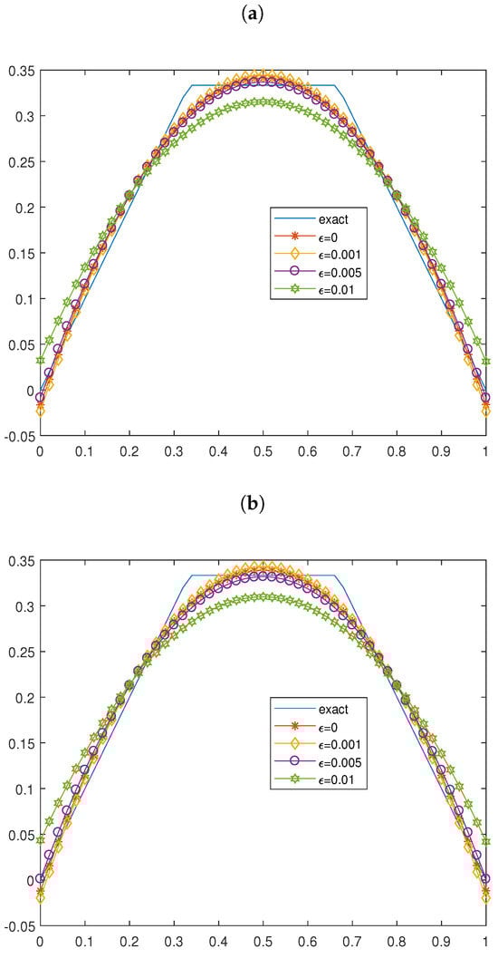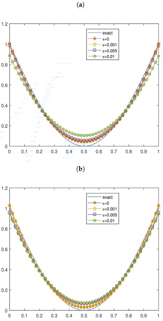 Numerical results for Example 2 with (a) , and (b) , 0.5, 0.2), .