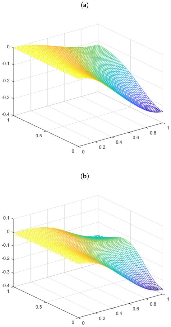 Numerical results for Example 3: (a) exact solution and (b) numerical solution.