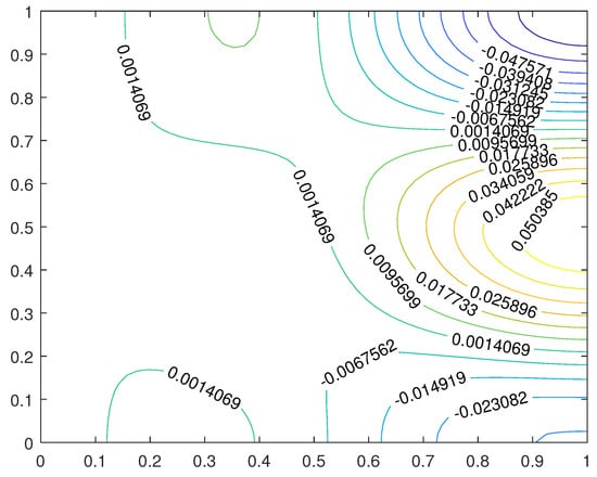 In this section, we will present three simulation examples, encompassing both one-dimensional and two-dimensional scenarios, to showcase the effectiveness of the Levenberg–Marquardt approach. For the approximate solution of the direct problem (1), we use the finite difference method cited in the following references [24,25]. A random disturbance is added to our numerical calculation to generate the noisy data, i.e.,