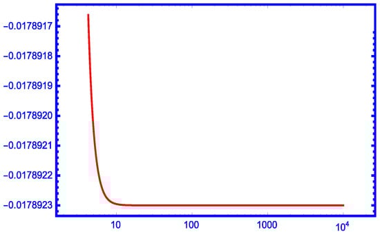 is known as the Digamma function and is used extensively in many mathematical and scientific contexts, where is the Euler Gamma function. In analytic number theory, the Digamma function appears in the study of zeta functions and special values of L-functions, which have implications for understanding the distribution of prime numbers [,]. It is important in quantum field theory and statistical mechanics, particularly in evaluating sums and series that arise in particle interactions and quantum states []. Its connection to the Gamma function makes it essential in computations involving energy levels and decay rates in quantum systems. In statistics, it is used for deriving properties of distributions, particularly in the calculation of expectations and variances for the Gamma and related distributions []. It is also used in parameter estimation methods, such as maximum likelihood estimation for models involving the Gamma and Dirichlet distributions. In computational mathematics, the Digamma function is useful for evaluating infinite series and products, as well as for solving certain differential Equations []. Some of its special characteristics, including the recurrence relation