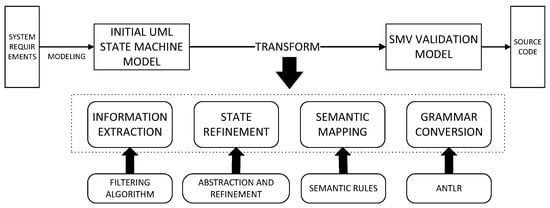 - Xu, M.; Kai, J.Y. A Tool to Convert XMI to SMV in Python. J. Fuzhou Univ. Nat. Sci. Ed. 2014, 42, 50–54. [Google Scholar]