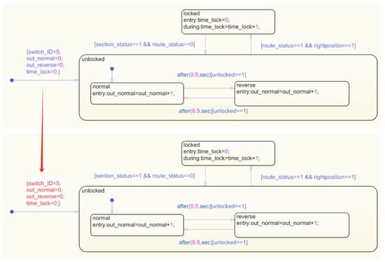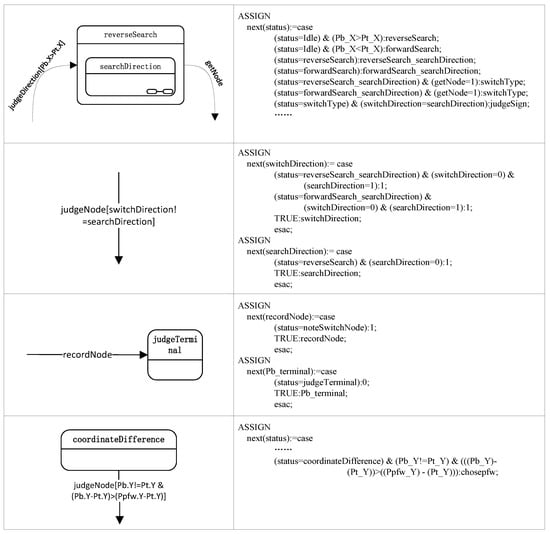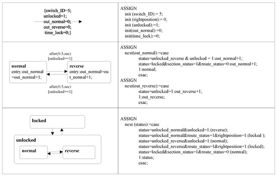 . Among them, is the initial state in the state model, and is the initial state in the validation model. Through semantic mapping operations, we map the initial state elements in Stateflow to the initial state elements in SMV. If there is no initial state in the Stateflow, the initial activity state of the model pointed to by the default migration will be taken as the initial state and mapped to the initial state element in SMV, as shown in conversion rule 5 (see Table 1).