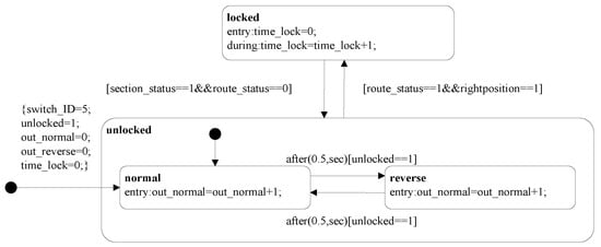 - Liu, Z. Formal Modeling and Verification of Interlocking Software based on UML-NuSMV. Master’s Thesis, Lanzhou Jiaotong University, Qinghai, China, 2018. [Google Scholar]