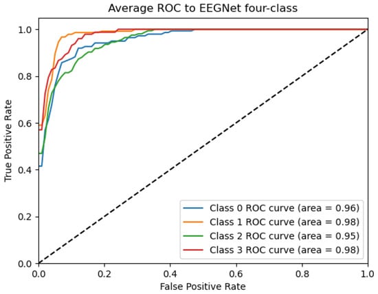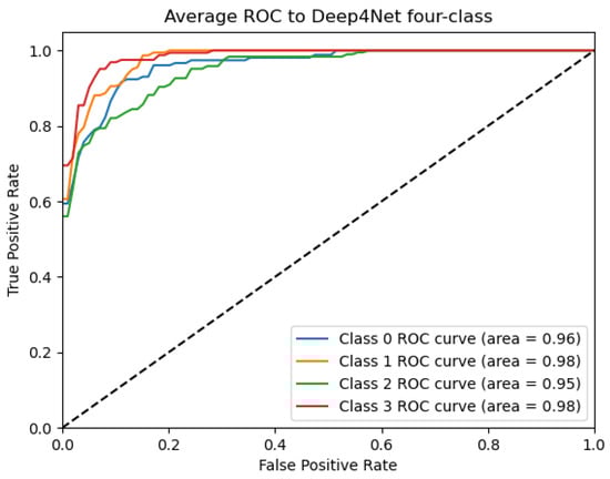 Figure 9, Figure 10, Figure 11, Figure 12 and Figure 13 show that there are significant differences in the working performance of the five models on the augmentation data. These models have a larger area under the ROC curve, indicating that they have a strong ability to distinguish between positive and negative samples and can better capture the potential patterns and rules in the data. Among them, the Deep4Net model has the highest sensitivity and can more accurately identify positive classes. This reflects the fact that the model has a stronger ability to distinguish between positive and negative samples, especially in capturing positive classes, in which case it is more sensitive and effective.