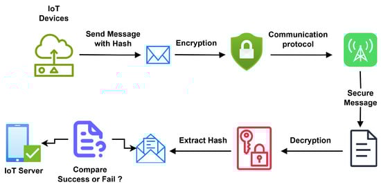 Hash functions are widely utilized in various security applications, including authentication [5,6], message authentication codes and digital signatures [7,8]. Moreover, hash functions provide an effective means of verifying data integrity (Figure 1).