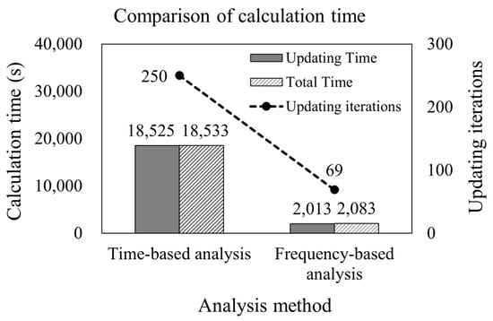 Similarly, the number of updating iterations was significantly reduced, from 250 iterations with the conventional method to 69 iterations with the proposed method—a 3.6-fold reduction. These comparisons demonstrate that the proposed method achieved substantially higher efficiency than the conventional approach. Furthermore, the validation confirms that the proposed method enables more accurate and computationally efficient analysis compared to the conventional method.