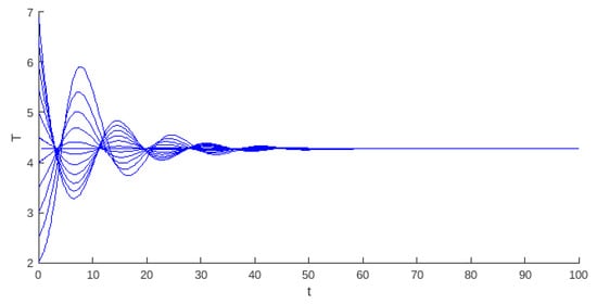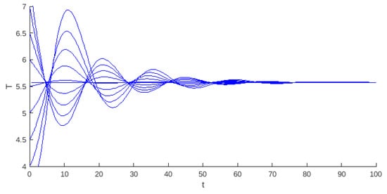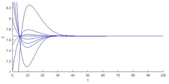 Then, for , we obtain and the critical point is locally asymptotically stable. □