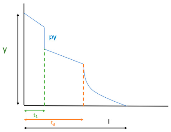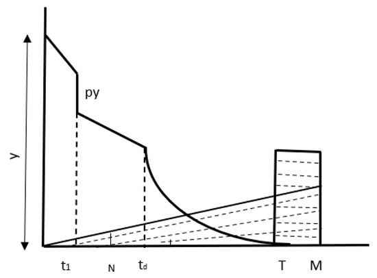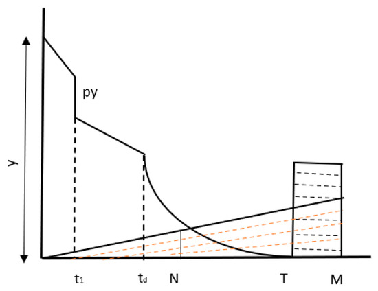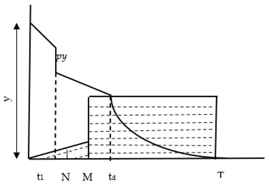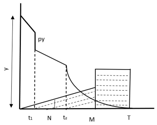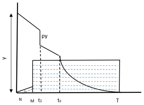 This research investigates a multi-level trade credit policy for inventory comprising defective and non-instantaneously deteriorating items. Initially, a quantity related to y units enters the system. Within the time frame , the inventory diminishes due to demand and imperfect item screening. After the screening time, items are separated as defective and non-defective items. The screening time can be calculated by t1(=y/x). Following the screening, the inventory decreases solely due to the demand between . Subsequently, deterioration commences, and the inventory is rejected due to the demand and item degeneration from , depleting entirely at t = T. Let and represent the inventory levels during and , respectively. The equations from Figure 1, which is differential of inventory level at any time t, are mentioned below: