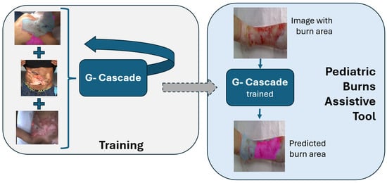 We propose a novel approach for developing an automatic segmentation deep learning model designed to function as an assistive tool for pediatric burn assessment. The schematic representation is illustrated in Figure 2. The trained model is designed to predict both the affected area and the burn degree.