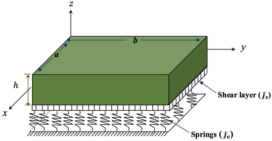 Virtual work’s principle is implemented to extract the governing equations of motion for the corresponding plate rested on the elastic foundation. In this specially context, it is calculated as follows [38]: