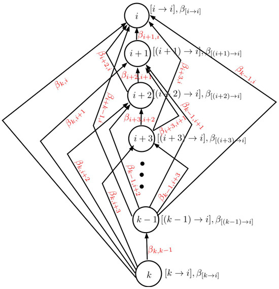 (β multiplicative value) The β multiplicative value from node k to node i is defined by , if and , if .