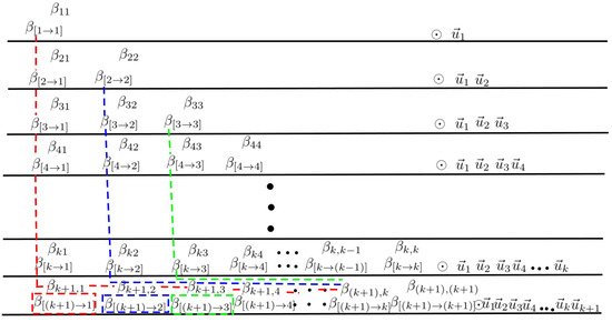 Inductive procedures for calculating : this figure demonstrates the inductive output of non-self-referential representations of orthogonal vectors given the input vector-based matrix . In the figure, ; .