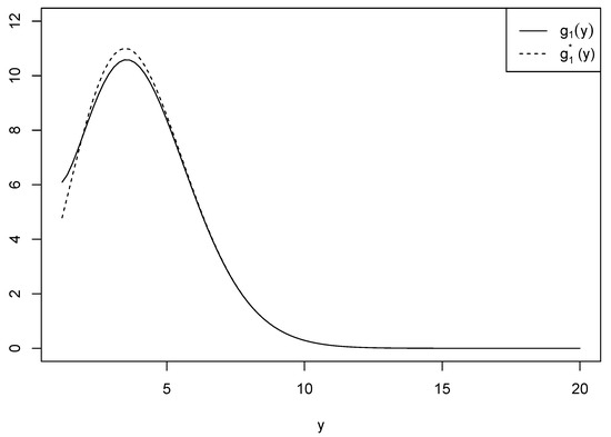 be another function used for approximation in which in is excluded. Figure 1 shows the two functions and when and for comparison purposes. We see that there is a number of differences between the ranges of the two functions for , while the difference vanishes when . We calculated the differences between and to ensure if the approximation is plausible. Table 1 provides the values of the differences when is and and is 3 and 4 for . We can see that the difference increases as increases, and it also increases as increases.