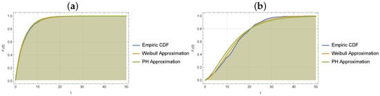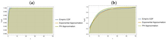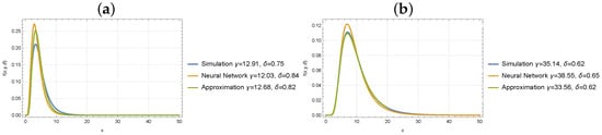 - Initialization of parameters of other time distributions of T is performed depending on the moments defined above. For the gamma distribution () with parameters and density functionthe parameters are calculated from the relationsFor a Pareto distribution () with parameters and density functionthe parameters depend on the moments of the random variable T in accordance with the relationsFinally, for a lognormal distribution () with parameters and density functionthe parameters are defined as