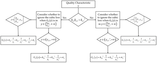 In the 1960s, the famous Japanese quality management scientist Genichi Taguchi [1] argued that if a product is used, it may result in financial losses if the value of its quality characteristics differs from the target value. The quality loss function notion was first presented by Taguchi, combining product quality with economic losses. Scholars have carried out research related to the product quality loss function. Cao et al. [2] applied fuzzy theory to introduce the concept of the fuzzy quality loss function; Zhao et al. [3] combined the quality loss function with the segmentation theory; Artiles-León [4] proposed a dimensionless “normalized” multivariate quality loss function; Wang et al. [5] proposed a more general form of the multi-parameter quality loss function model; and Chang and Hung [6] studied the linear quality loss function and proposed an optimal design method for unilateral specification bounds. Deng [7] demonstrated that under the autocorrelation process, the quality loss resulting from the autocorrelated process can be estimated via the quality loss function, which can be combined with engineering process control to enhance the effectiveness of quality process management; Ding et al. [8] established a numerical optimization model in combination with the quality loss function to solve the quality robustness of the modularized design, which was computed to obtain the optimal combination of selections while ensuring the minimum loss of quality; and Duan et al. [9] addressed the limitations of multivariate quality loss models in adapting to changes in customer demands by using a multivariate quality loss function incremental model. This model is capable of promptly responding to changes in customer requirements through adjustments to its parameters. Xue and Zhang et al. [10,11] used the quality loss function to undertake an economic design of VSI EWMA control charts and ARMA models; Li et al. [12] refined the quality loss function by making it dimensionless, thereby enabling more consistent comparisons of quality loss measurements during predictions; Mao et al. [13] modified the quality loss function to better reflect the different rates of increase on either side of the target value, ensuring a more accurate representation of quality losses; and Zhang et al. [14,15,16], considering that linear term loss must not be ignored, proposed a quality loss function model for the LBC and SBC without neglecting the linear term. They also discussed the magnitude of the linear and quadratic term losses under various conditions. Feng et al. [17], addressing the issue of robust parameter design, developed a new multi-response optimization model based on multivariate Gaussian process modeling techniques. This model integrates the quality loss function and nonlinear constraint methods. They utilized simulation to achieve a robust parameter design. Li et al. [18,19], addressing the issue that traditional quality loss functions ignore linear and cubic term losses, proposed a cubic quality loss function model that does not neglect the linear and cubic terms. Based on this model, they studied hidden quality loss costs; Zhang et al. [20,21] studied the process mean in the context of the quality loss function, noting that the process mean can be shifted due to the influence of random oscillations. They established an optimal economic model for the original process mean. Jin [22] argued that the process mean is not necessarily better when it is closer to the target value and proposed an asymmetric quality loss function. Zhao et al. [23] utilized the quality loss function, incorporating factors, such as the operating environment, to design a new method for tolerance design. They also applied the theory of tolerance design to the service phase. Zhai et al. [24] proposed a multi-response robust parameter design model based on Gaussian processes, combining Gaussian processes with the multivariate quality loss function.