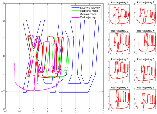 Referring to the data in Table 4, we can see that the DTW error of the dynamic model is consistently smaller than that of the kinematic model, with the maximum error being 0.3505 and the minimum error being 0.1748, while the dynamic model has a maximum error of 0.3867 and a minimum of 0.2540. The overall average error decreased by 16.7%. This clearly demonstrates that the dynamic model, which maps PWM signals to vehicle posture, is closer to the real behavior of the vehicle compared to the traditional kinematic models in [5,6,7].