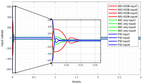 IMC + DOB control inputs under different load torques.