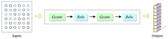 GNNs have significant advantages in processing large-scale dynamic network data but are computationally complex. Jiao et al. [42] proposed a dynamic network embedding method that generates low-dimensional embedding vectors for nodes while preserving the non-linear features of dynamic networks. By combining attention mechanisms with RecGNNs, this method can update node representations and maintain the temporal dependence of vectors, which improves its accuracy and efficiency. Pham et al. [43] proposed a dynamic network link prediction method called ComGCN based on RecGNNs and ConvGNNs. ComGCN is a combination of micro-embedding (node-level) and meso-embedding (community-level), capable of effectively handling link prediction problems in dynamic environments. Kumar et al. [44] developed a Graph Neural Simulator (GNS) hat can learn and predict the flow of systems. A GNS consists of three components: an encoder that embeds particle information into a latent graph, a processor that allows data propagation and calculates node interactions across steps, and a decoder that extracts relevant dynamics from the graph. A GNS updates the state with semi-implicit Euler integration according to predicted acceleration, and a GNS trained on trajectory data has good generalization capabilities. Zheng et al. [45] proposed a transition structure to adaptively personalize node modeling and capture node dynamics. This method constructs a two-layer graph structure: an explicit interaction graph and a sequential interaction graph of nodes. It encodes the transition structure through multi-step transition propagation and extracts effective information from the neighborhood with dual GNNs. The schematic diagram of ConvGNNs is shown in Figure 4.