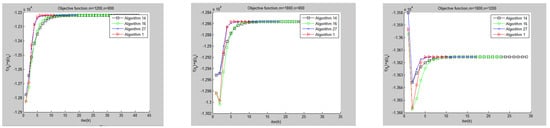 Objective function curve of Algorithm 1 and the other three algorithms.