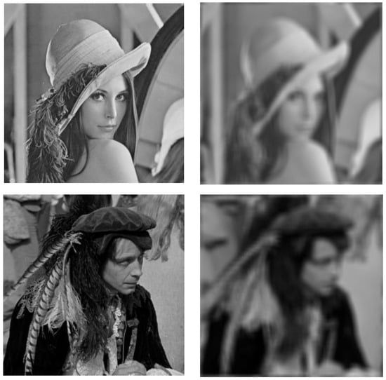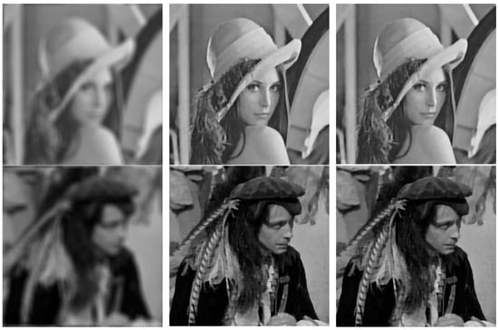 where is the original image and is the recovered image. A larger SNR value means a higher quality of the restored image. Table 3 and Figure 3 report the comparison experiment between Algorithm 1 and the algorithm proposed in [] for the image restoration problem.