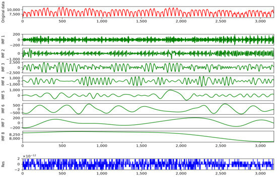 Power load data typically have high randomness and volatility, and directly predicting raw data can increase computational complexity and may lead to model overfitting. The implementation of modal decomposition techniques to disassemble raw signals into IMFs effectively reduces both data intricacy and computational intensity within individual components, thereby mitigating computational complexity [69].