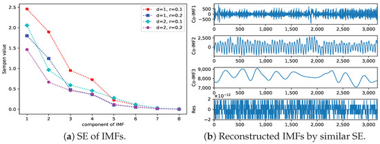Sample entropy is proposed to measure the complexity of signal sequences based on approximate entropy [73]. Higher sample entropy indicates higher complexity of the sequence, and, on the contrary, the complexity of the sequence. The advantage of sample entropy over approximate entropy is that it is not compared to its data segment; the calculation results are independent of the length of the data and are more consistent. The steps for calculating the sample entropy are as follows: