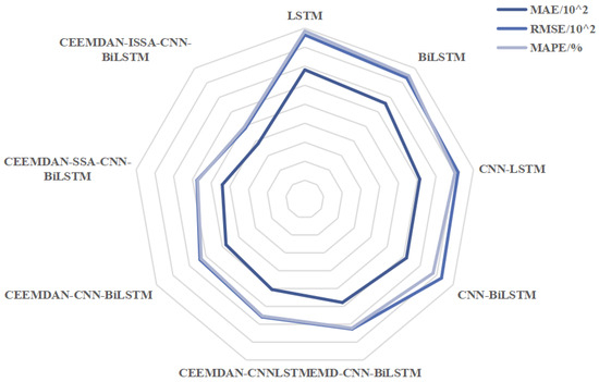 Third, we use CNN-BiLSTM as the hybrid model for prediction, which combines forward and backward networks with better performance on time series data in STLF. We validate the model against eight benchmark methods. Performance metrics include the RMSE, MAE, and MAPE. The results confirm that our model outperforms alternatives in prediction accuracy. Each design stage integrates techniques specifically tailored for STLF challenges, ensuring balanced improvements across decomposition quality, parameter optimization, and prediction capability.