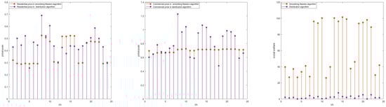 In this section, we compare the proposed algorithm with the distributed algorithm in Ref. [26] to solve the residential electricity price, the commercial electricity price, and the total social welfare of the risk-classified model, and the results are shown in Figure 4.