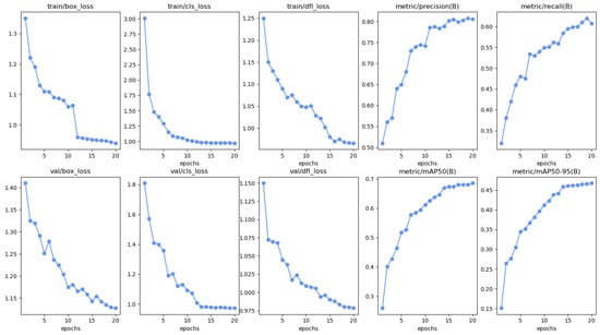 Next, in Figure 10 and Figure 11, we demonstrate the per epochs via train and validation bounded box, class and distribution focal loss functions, precision, recall, mAP50(B), and mAP50-95(B).