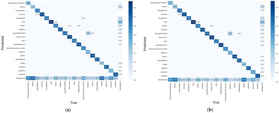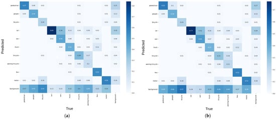 Confusion matrix received from (a) Yolov8n; (b) proposed Yolov8n-Tucker-2.