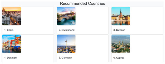 The ranking of recommended destinations for each user reflects their individual criteria preferences. For example, Anna’s strong emphasis on the cost of living and adventure activities resulted in Spain ranking highest, as it aligns well with these priorities. On the other hand, Bill placed a higher importance on affordability and travel time, leading to Cyprus being his top recommendation due to its lower travel costs and convenient accessibility. Peter’s preference for safety and quality of life made Switzerland the best match for him, as it scores highly in these categories. These results demonstrate how the fuzzy TOPSIS-based mechanism dynamically balances multiple conflicting factors to generate personalized recommendations that cater to diverse traveler profiles.