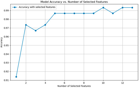 Figure 8 illustrates the impact of different feature dimensions on the model’s classification accuracy. From the figure, it is evident that as the feature dimension increases to 10, the model’s accuracy stabilizes at 99.34% from XGBoost. This suggests that after reaching a certain dimension, adding more features contributes negligibly to the model’s performance. From a practical perspective, it is ideal for physicians to maintain the same accuracy while reducing the number of required features to streamline the diagnostic process. To delve further into the implications of these 10 features on the model, the SHAP-GAN network was employed to evaluate their impact, enabling an accurate measurement of the significance of each feature on the model’s predictions.