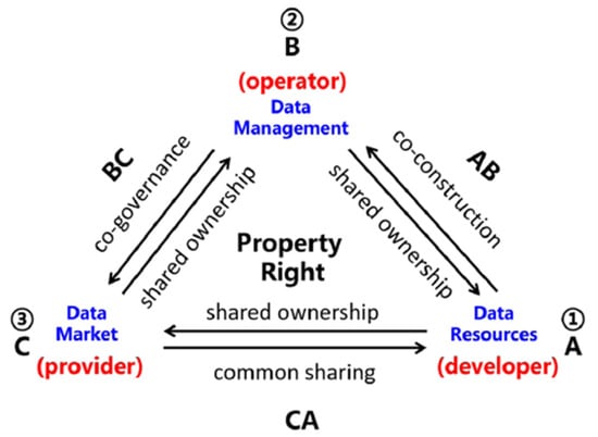 To clarify the relationships among data resources and ensure their effective development and utilization, defining property rights is essential [28]. Property rights encompass elements such as ownership, possession, management, and usufruct. Notably, data ownership can vary across different stages of the data lifecycle [28]. To address the issue of unclear ownership, both legal frameworks [29] and technological solutions [30] have been applied. Additionally, concepts such as joint construction, joint governance, and shared governance [31,32] have been introduced to navigate the complex, multi-level, and dynamic nature of data ownership relationships. Hu et al. [33] have further categorized data resource ownership-sharing relationships into three types—core–core members, core–non-core members, and non-core–non-core members—and conducted studies on governance models for these ownership structures.