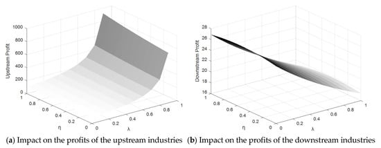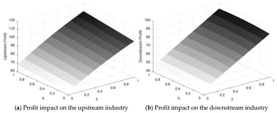 Corollary 2 shows that the continuous incentive for upstream industries will lead to higher pricing for both upstream and downstream industries, where the pricing further increases with an increase in the incentive coefficient. This is because the incentive mechanism for upstream industries is usually designed to enhance their data production and supply capacity; this directly increases the value of data and market demand, and therefore, they can make higher profits by increasing their pricing. In the face of the price increase of upstream data, the downstream purchase cost increases. For such industries to maintain their own profit margin and competitiveness, the pricing of their own products or services must be improved.