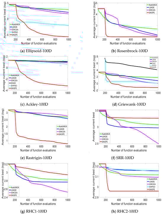 4.3. Experimental Results on 30D, 50D, and 100D Benchmark Functions